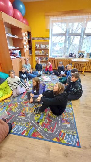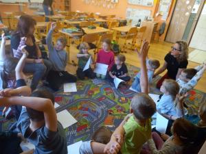 Pohádková babička = návštěva MŠ Dobřív v naší škole. Čtenářská pohádková lekce.