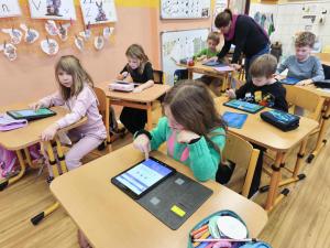 1.třída práce na tablech a tandemová výuka čtenářská dílna.
