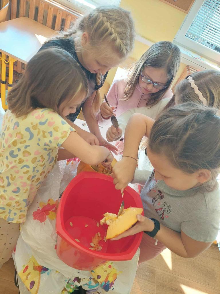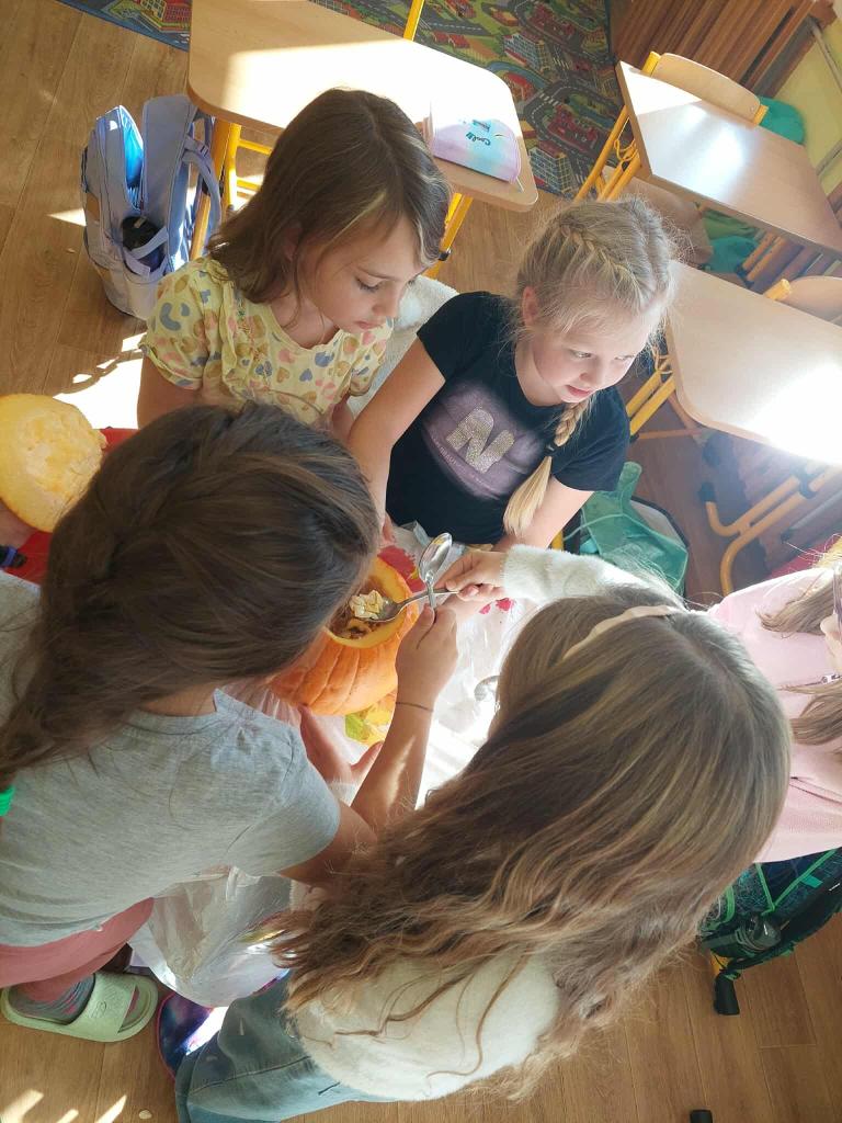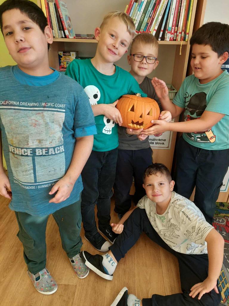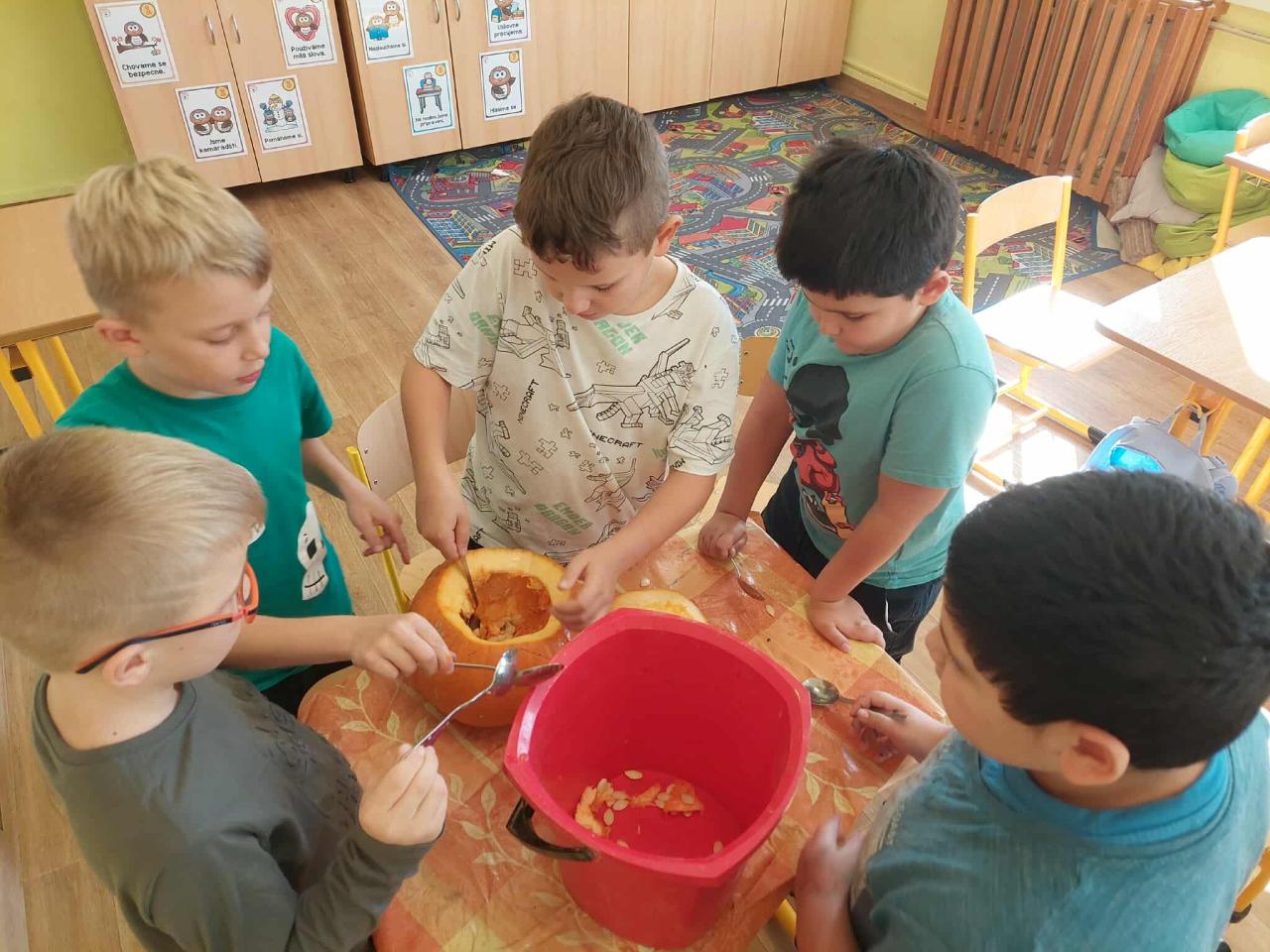 Dlabání dýní ve 2.třídě s paní učitelkou Anetkou