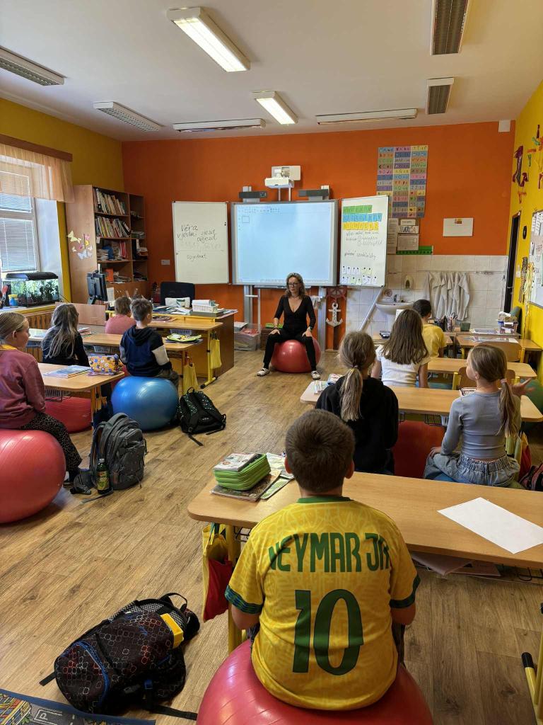 Každé úterý matematika ve 4.třídě na míčích.