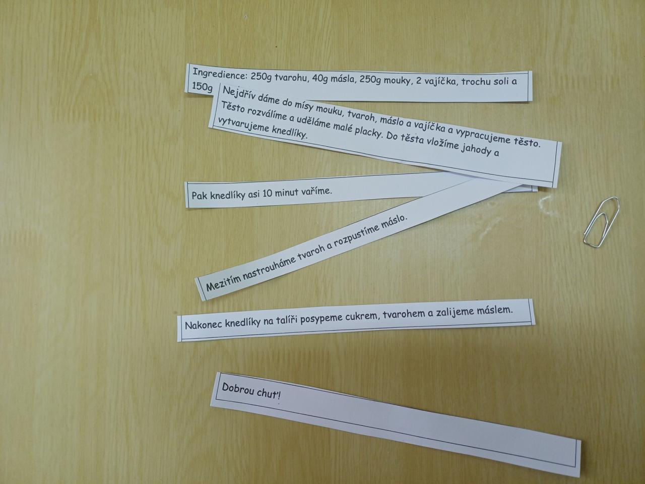 Popis pracovního postupu=tvarohové knedlíky s jahodami. A jak jinak si ověřit správnost složeného postupu na kartičkách? Uvařit si je. Dobrou chuť, nic nezbylo