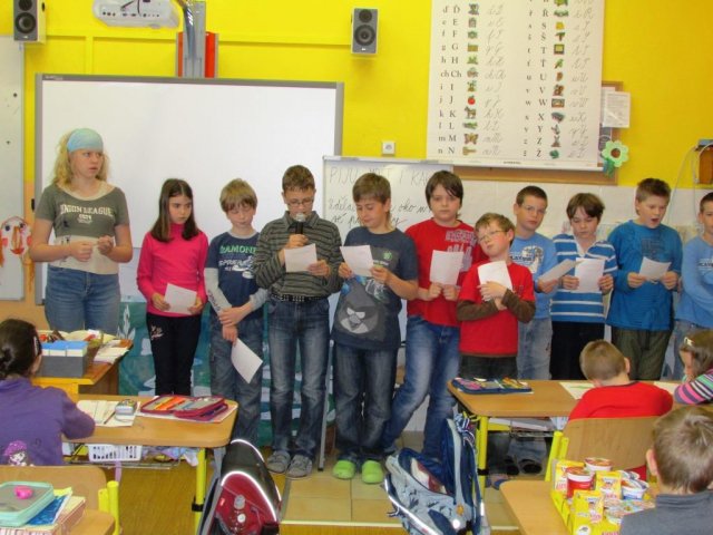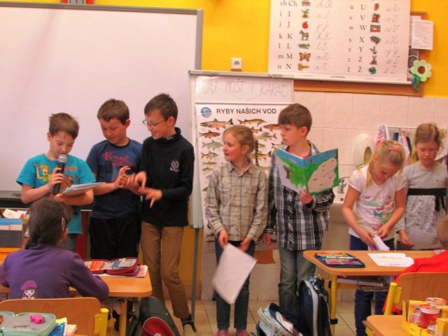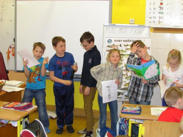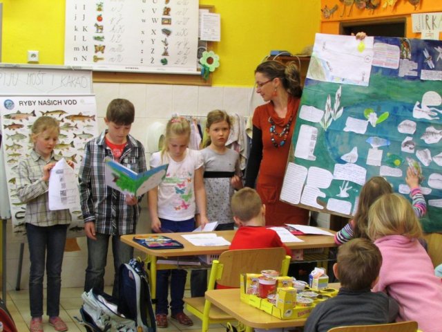 Ukončení projektu VODA SPOJUJE patřilo prezentaci. Žáci 1. a 2. ročníku předvedli veškeré výstupy ze své práce, krásné básničky, spoustu zajímavostí o životě vodních živočichů. Žáci 4. a 5. ročníku přečetli zajímavosti o vodním hamru a vodních tocích.
